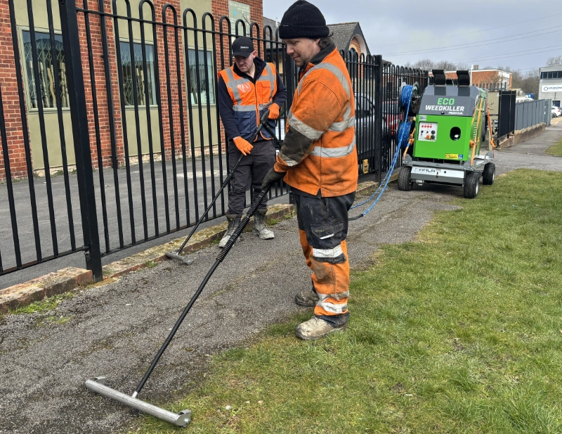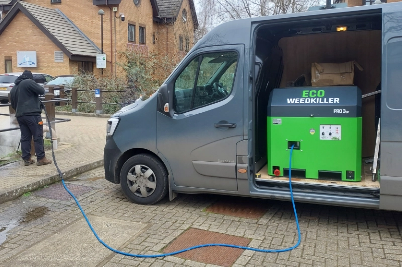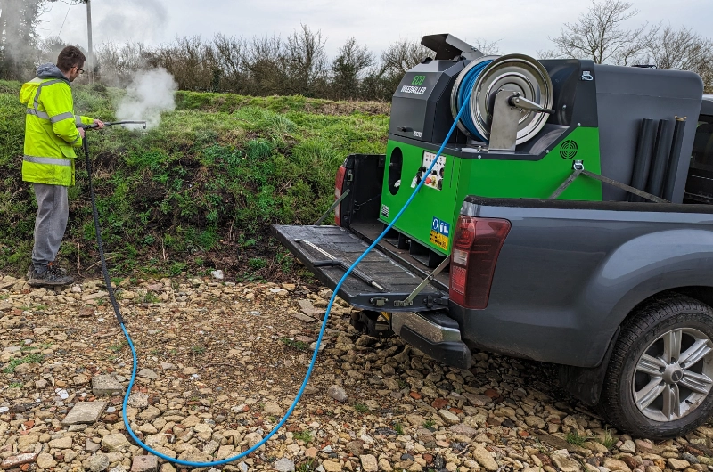 Eco Weedkiller uses hot water to kill plants. This method is suitable to use in a much wider variety of weather than many other systems.