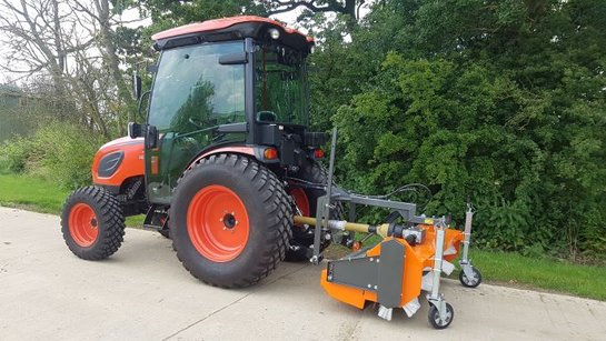 The Kioti CK series is a very popular tractor, ideal for doing jobs around sites like holiday parks, private estates and urban areas. We often get asked to fit a sweeper to this great little machine. If you are looking for a sweeper to clear debris and moss, look after an artificial surface or sweep your access roads, then a rear PTO driven sweeper is just what you need.